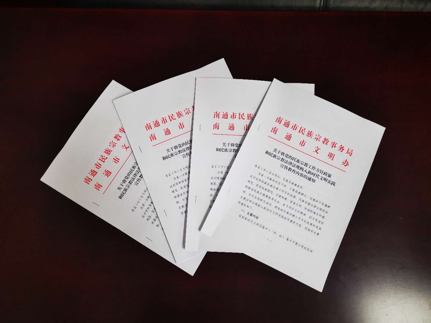 南通市民宗局还统一编写了《宣传教育参考材料目录》《党的民族宗教工作方针政策和民族宗教法律法规宣传提纲》。同时通过联合发文对各县(市)区民宗部门、文明办提出具体要求和工作举措: