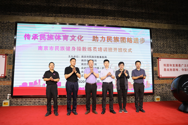 2020年9月12至13日,南京市民宗局、体育局、教育局联合在玄武区T80民族团结进步创建基地举办了民族健身操教练员培训班,各区民宗局组织的健身操教练学员85人参加了培训,他们将回到所在社区、单位推广普及民族健身操。