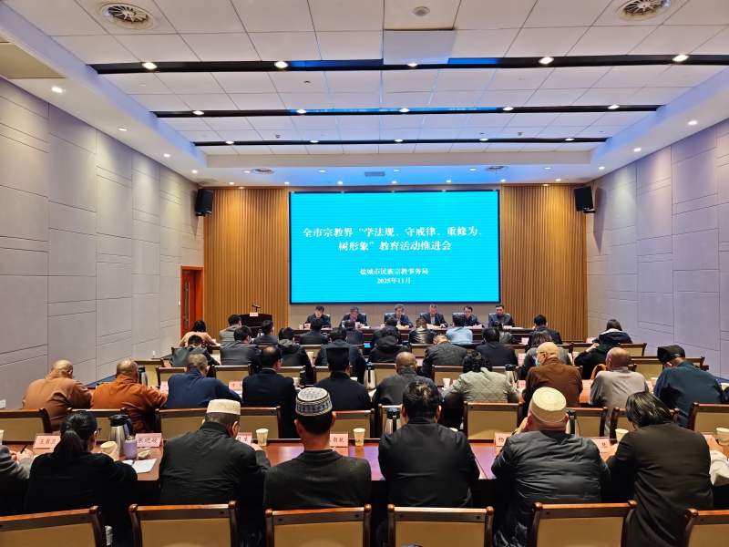 11月14日下午,盐城市民宗局召开全市宗教界“学法规、守戒律、重修为、树形象”教育活动推进会,深入贯彻落实党中央关于宗教工作的决策部署及全省相关会议精神,对全市教育活动开展情况进行部署安排,研究下一阶段重点任务。市委统战部副部长、市民宗局局长黄斌出席会议并讲话。