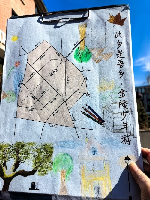 本次行走特别设置了亲子共绘环节。各族家庭分组协作,手绘心中的颐和路地图。孩子们主导创作,家长从旁支持,一笔一画间,不仅绘出街巷轮廓,更绘出彼此交流的暖意与协作的网络。学生和家长在分享中纷纷表示:“这样的‘读城’活动,让我们对南京多了了解,也多了家的归属。”从凝视历史照片时的肃然起敬,到行走街巷时的好奇提问,一颗名为“认同”的种子,已随着这段沉浸式的“读城”行走悄然种下。