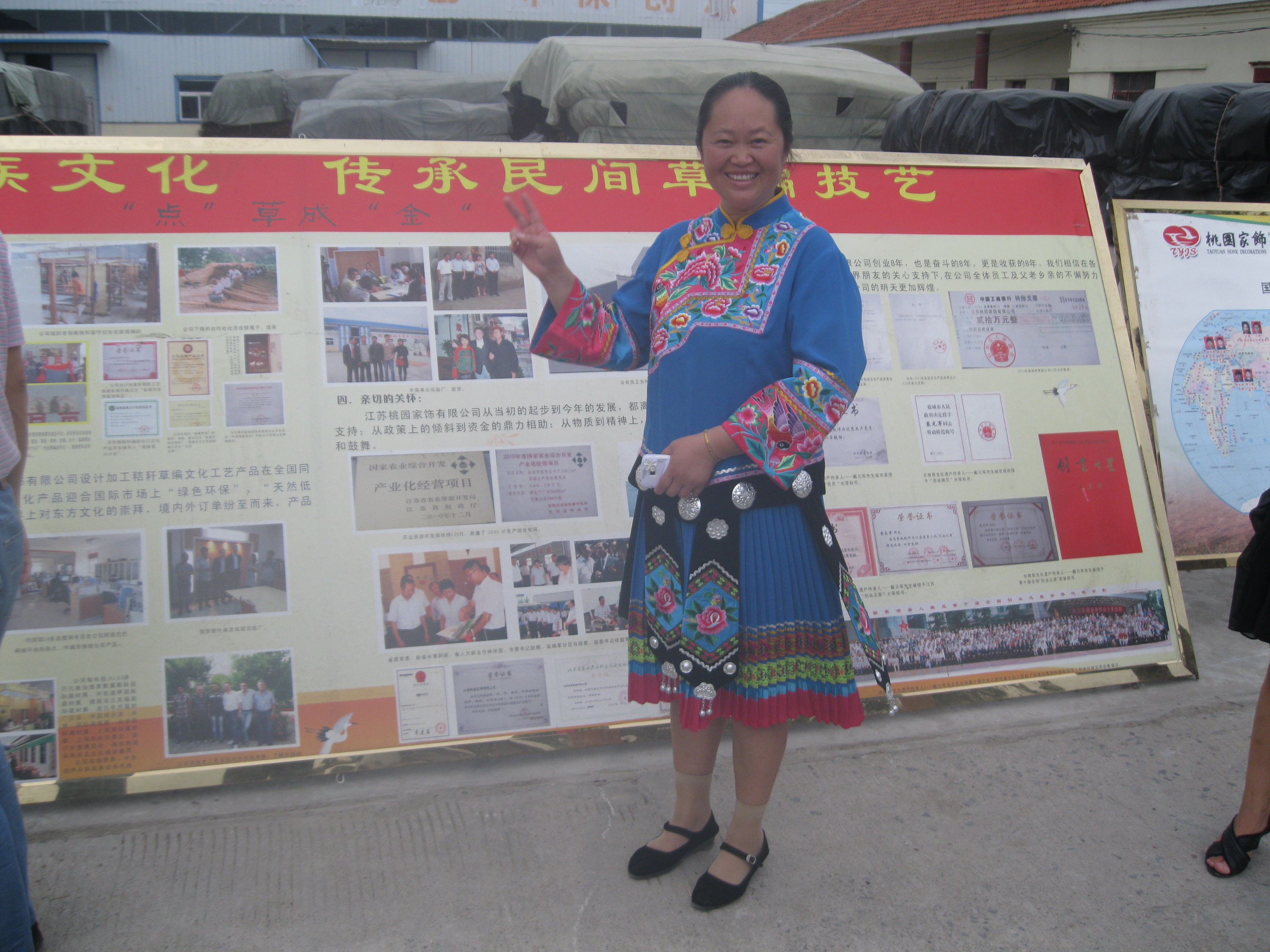 公司采取了“公司+专业合作社+基地+农户”的生产经营模式,在县内5个镇创办起16个草编专业合作分社,就地吸纳农村弱势群体近万人到厂或在家进行初加工。这种模式,不仅节省了公司的非生产性投资,也方便了外镇群众就业。