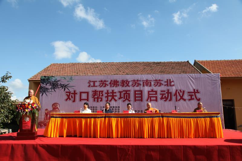 江苏省佛教协会自去年12月换届以来,新一届理事会着眼全省佛教健康发展大局,通过深入调研,确定了苏南苏北佛教界对口帮扶的工作思路,于8月21日在盐城阜宁马躲寺举行苏南苏北对口帮扶项目启动仪式。